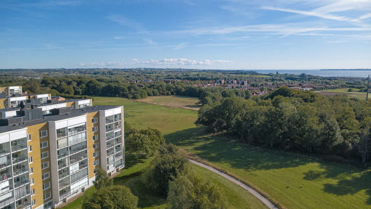 Hela området ligger på en platå, ca 40 meter över havet och de flesta lägenheterna har utsikt över Öresund och Ven. Vid god sikt kan man se Öresundsbron.