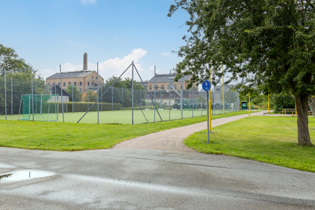 Tvåplans funkisinspirerat hus från 1939 på stor hörntomt i Hasslarp