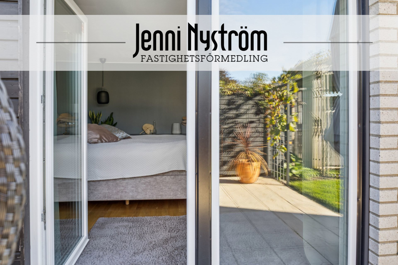 Här möts du av en trädgård och utemiljö som verkligen har allt man kan önska sig. På framsidan välkomnas du av en lättskött stensättning och två vackra silverpäronträd som skapar ett stilfullt första intryck.